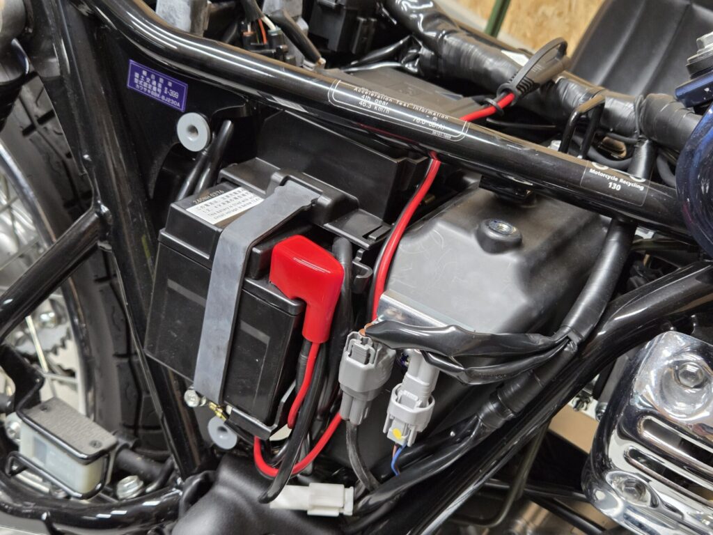 走行に邪魔にならないよう取り回しを考えながら、SAEコネクタをシート下まで延ばせば、完了です。